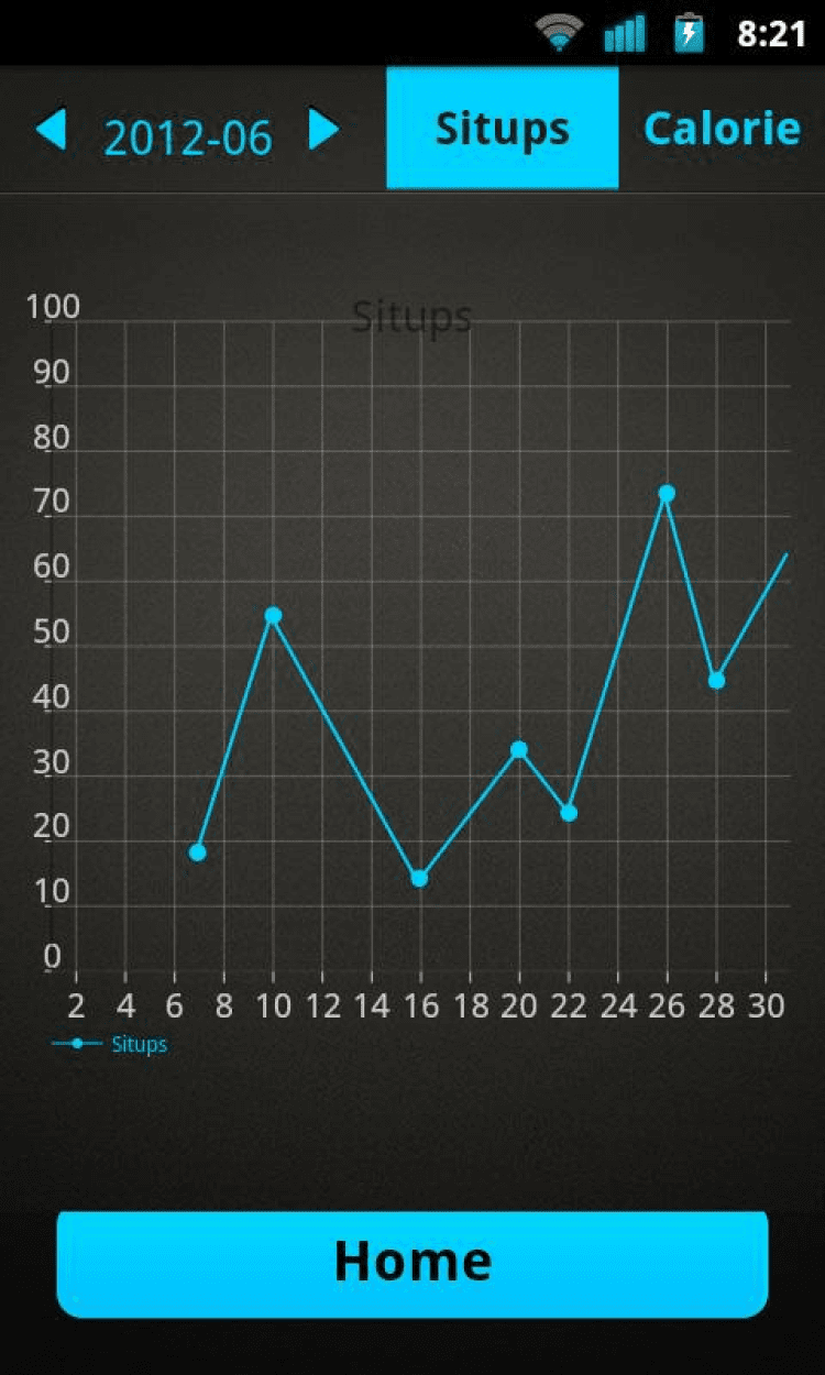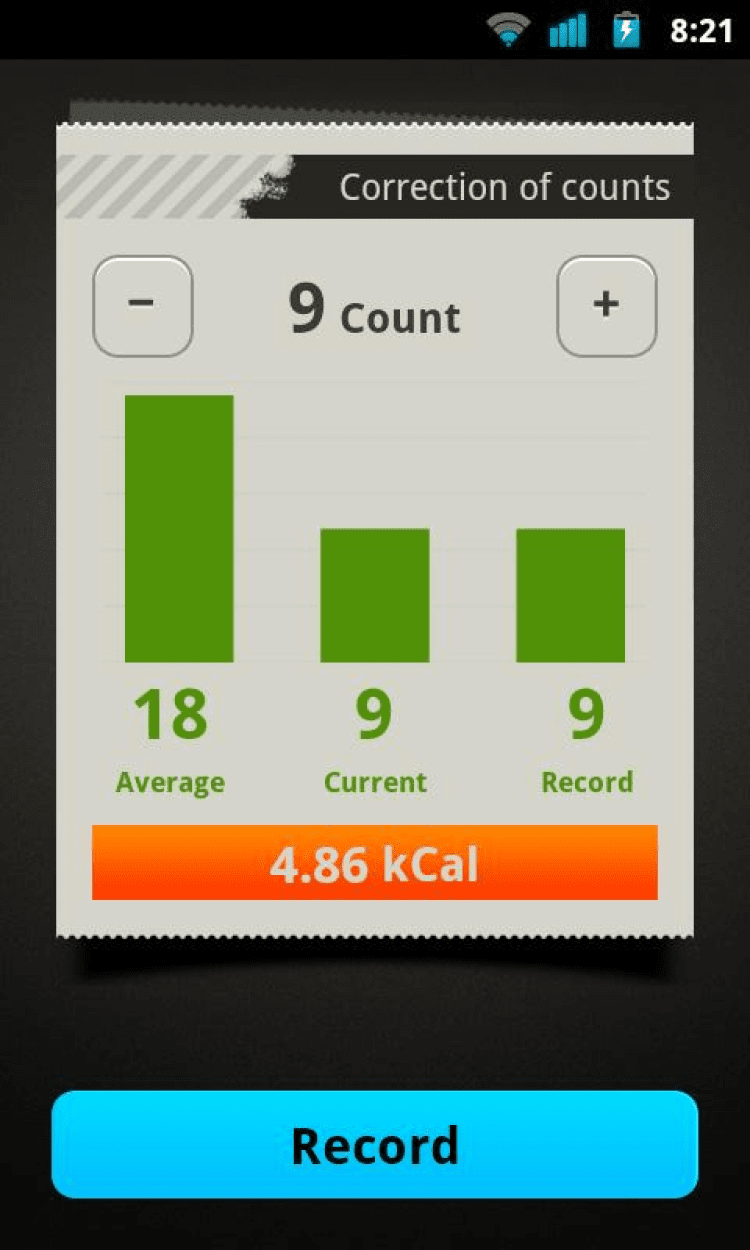 Положите свое устройство себе на грудь, держите его двумя руками, запустите тренировку а программа будет вести подсчет наклонов и отобразит вам количество сожженных калорий. Помимо режима тренировки в программе имеется режим свободного качания пресса, не дающий рекомендаций по количеству наклонов и подходов.