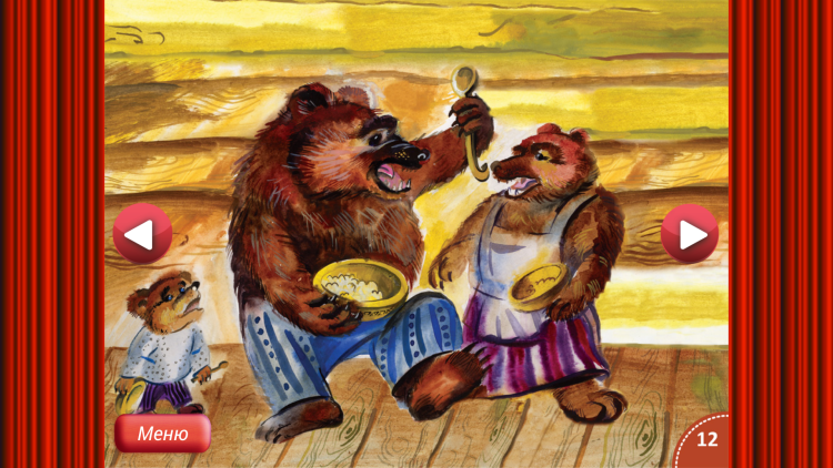 Сказка Маша и Три Медведя Поучительная и всеми любимая сказка на экране вашего мобильного устройства. Яркие иллюстрации, интересные звуки, забавная и веселая графика - ваш ребенок будет в восторге. Альбомная версия, горизонтальное расположение страниц без написанного текста и без печатных букв – для самых маленьких. Листай страницы и слушай аудиосказку - радиоспектакль. Одно прикосновение и персонажи сказки заговорят с вашим ребенком, он будет рад, ведь теперь он сам может участвовать в сказке. На первый взгляд кажется, что приложение похоже на обычную книгу — но коснитесь странички и окажется, что книжка живая и волшебная. Страницы переворачиваются, герои сказки разговаривают. Теперь даже не умея читать, ребенок сможет без взрослых читать интересные ему книги, а у родителей появится больше свободного времени.