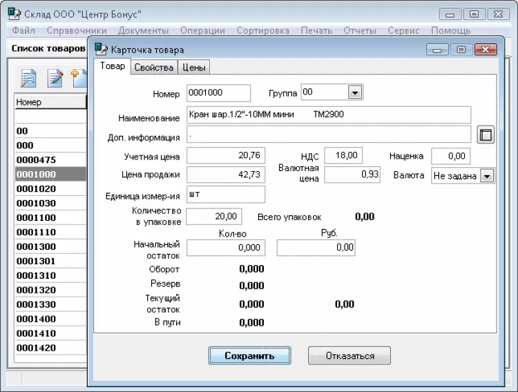 Программа позволяет отслеживать остатки товаров и материалов на складе и получать отчеты по остаткам на любую дату. Товарный учет основывается на ведении карточек складского учета. В карточках хранится вся оперативная информация по товару. Программа позволяет вести учет товара на нескольких складах, производить и отслеживать приход и расход товаров, перемещение товаров между складами. По выписанным счетам производится резервирование товара. В программе ведется учет расчетов с покупателями и поставщиками. Есть возможность печати ценников. Программа идеально подходит для малых и средних предприятий оптовой и оптово-розничной торговли.