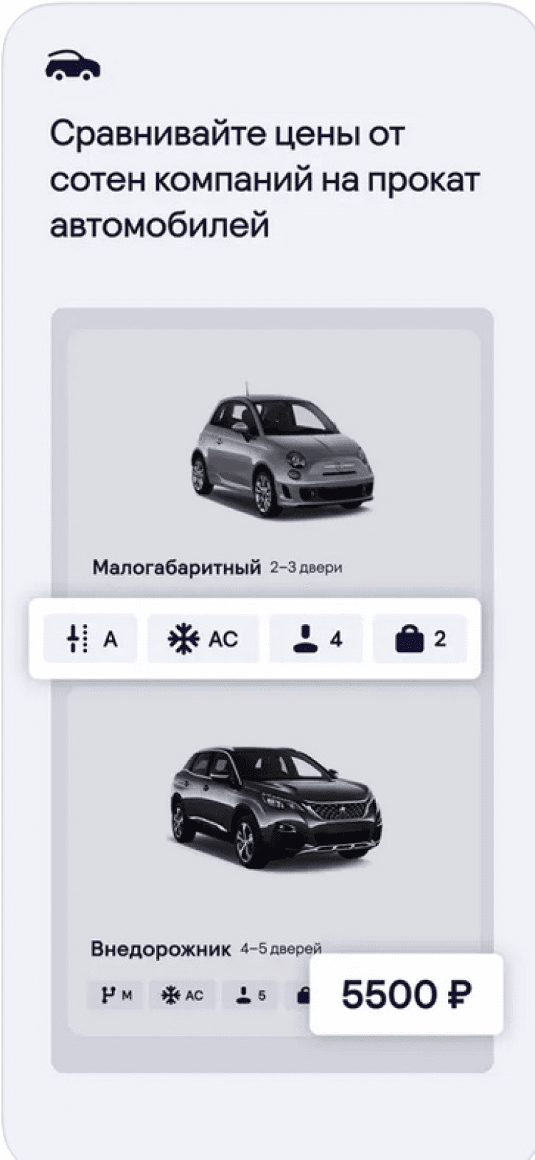 Приятный сюрприз ожидает и любителей передвигаться на автомобиле даже во время путешествий. В этой программе вы сможете с легкостью найти информацию о прокате машин в 30000 аэропортов и городов мира. Для этого, просто выберите желаемый город и даты пребывания, а программа покажет список доступных вариантов, начиная с самого недорогого. При этом, для каждого предложения будет учитываться топливная политика, что не даст вам переплатить за бензин.