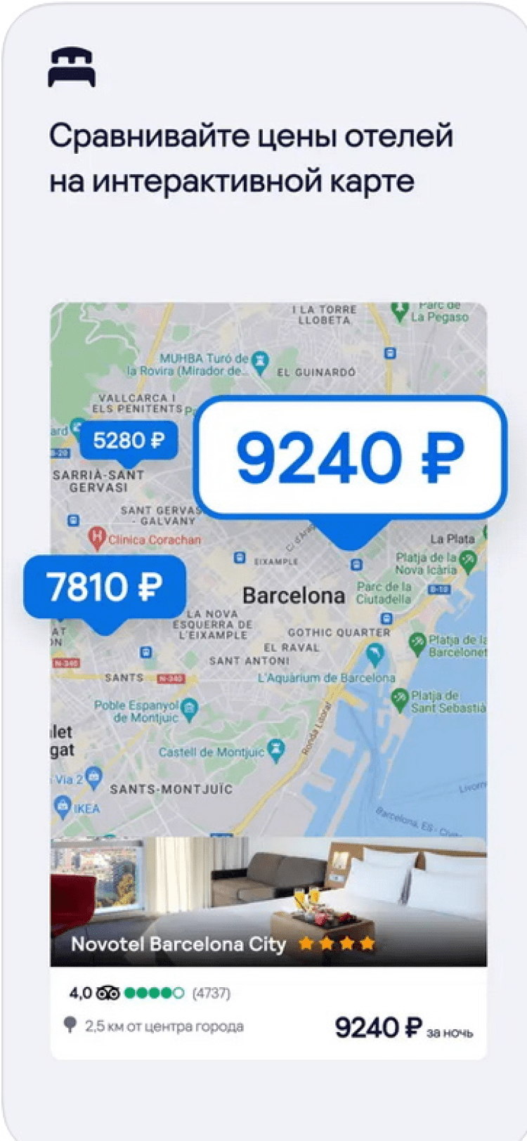 Помимо авиабилетов, Skyscanner для iOS поможет найти номер в отеле по наиболее низкой цене. Для этого, программа выполнит поиск как на сайтах сотен тысяч гостиниц, так и по базам ведущих сервисов бронирования.
