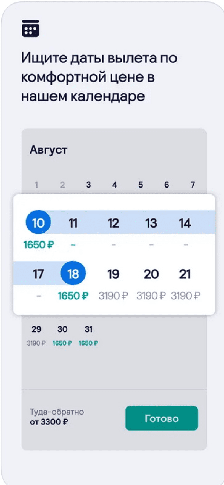 Для тех, кто ещё не определился с местом проведения отпуска, в программе присутствует специальный раздел "Везде", в котором можно ознакомиться с самыми недорогими вариантами перелета из ближайшего аэропорта. А воспользовавшись функцией "Лучшие предложения" можно найти и самые выгодные дни для полета.