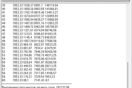 В итоге подсчитывает суммы выплаченых процентов и сумма кредита плюс проценты.