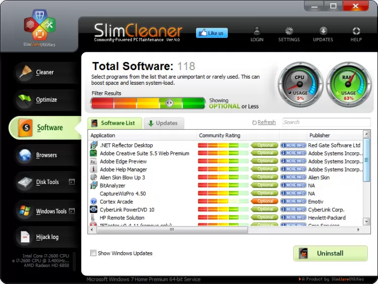 SlimCleaner - это эффективная утилита, которая предназначена для очистки вашего компьютера от мусорных файлов и оптимизации его производительности. С помощью SlimCleaner и инструментов, которыми она обладает, вы сможете постоянно поддерживает свой компьютер в хорошей форме.