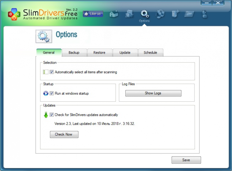 SlimDrivers - программа, предназначенная для поддержания актуальности драйверов для всех компонентов вашего ПК.