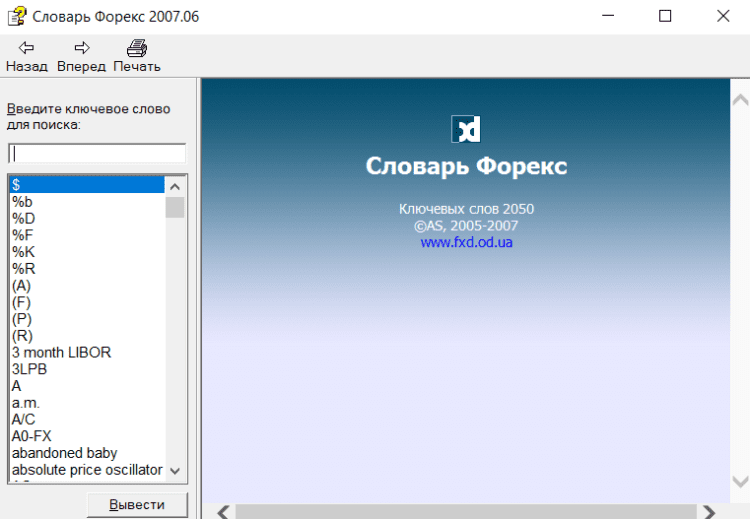 Словарь Форекс - это большой словарь Форекс (forex). Ключевых слов 2050. Aббревиатуры, перевод, справки, библиография, иллюстрации, жаргон. Установка не требуется (формат .chm). Системные требования: наличие Microsoft Internet Explorer.