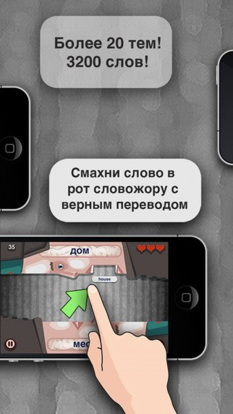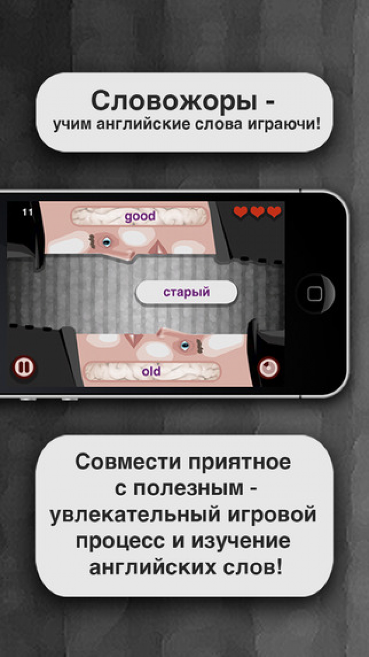 Словожоры Это приложение позволяет в игровой форме заучивать слова английского языка.