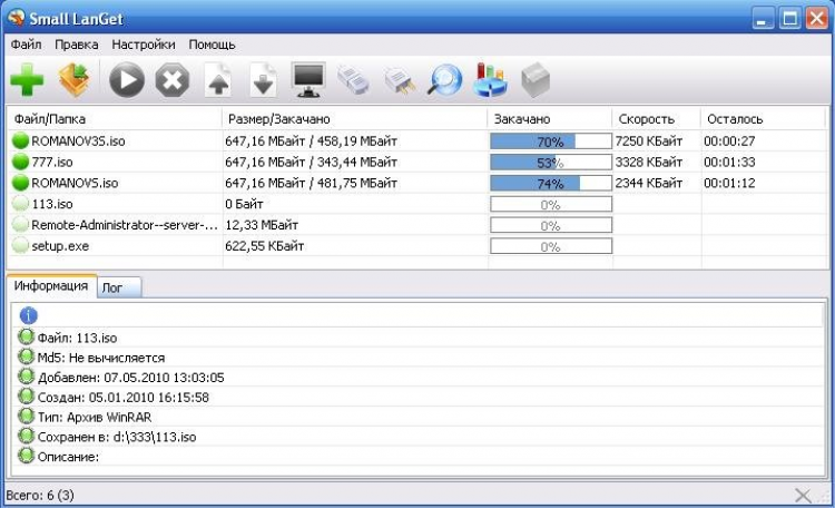 Small LanGet - это программа для закачки файлов по локальной сети (NetBios, TCP/IP) с докачкой, что позволяет докачать файл с того места, где оборвалась его закачка, а не начинать скачивать его заново.