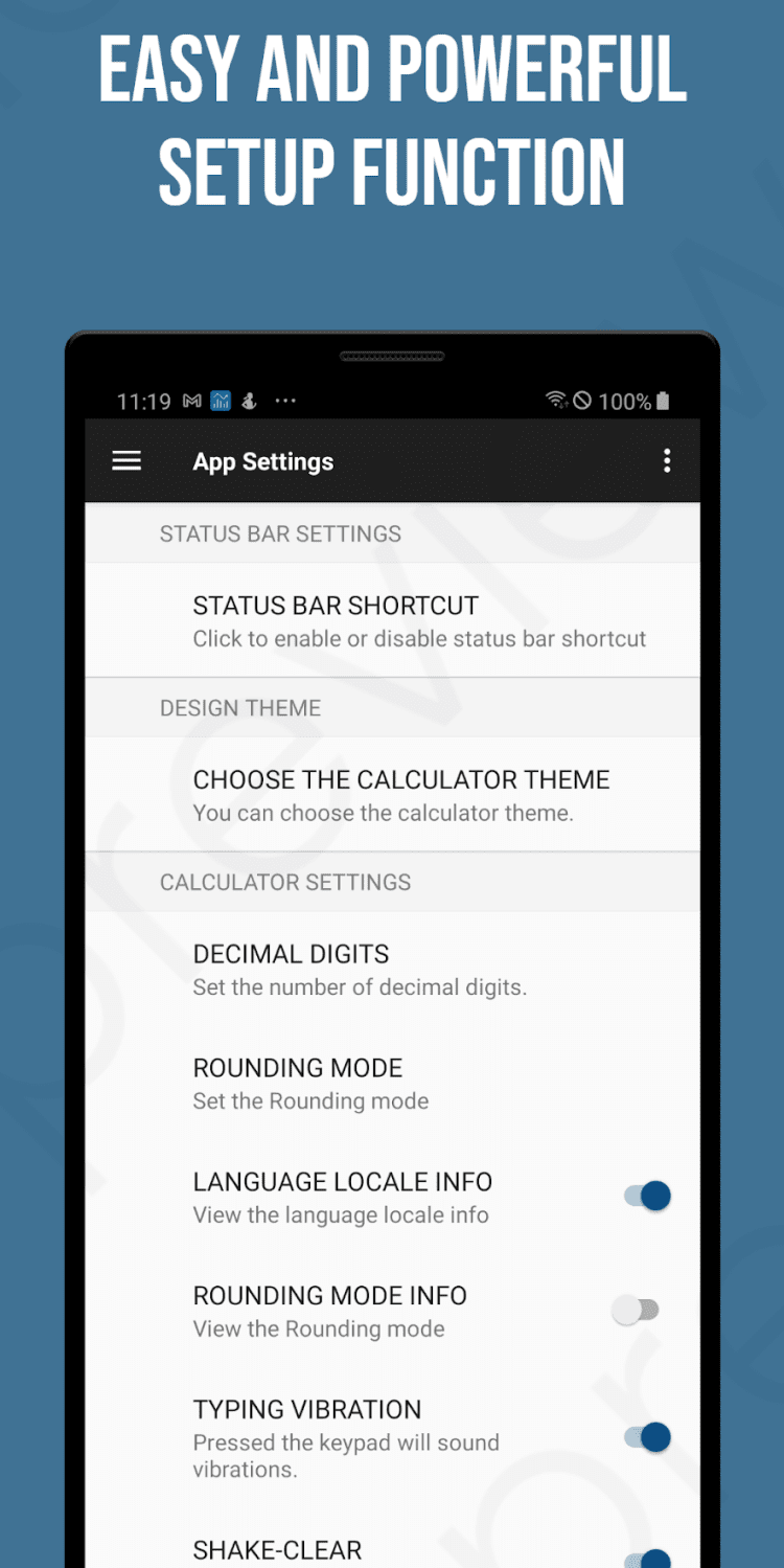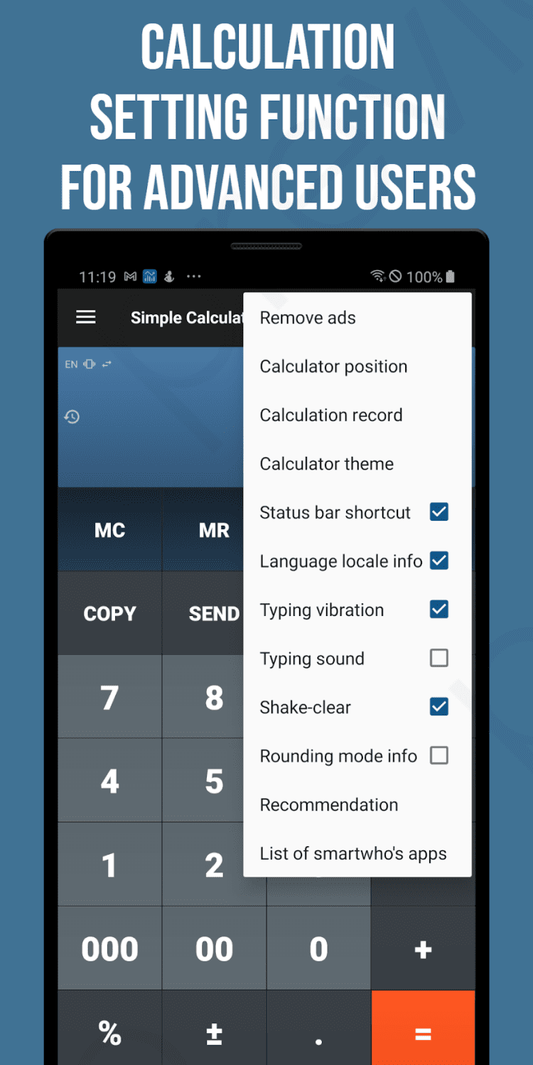 Smart Calculator Удобный калькулятор для Android. Данный калькулятор поддерживает до 50 символов, из которых 30 - до разделительной точки. Вы можете включить или выключить звук нажатия клавиш и выбрать понравившийся вам фон. Чтобы сбросить введенные данные - просто встряхните телефон.
