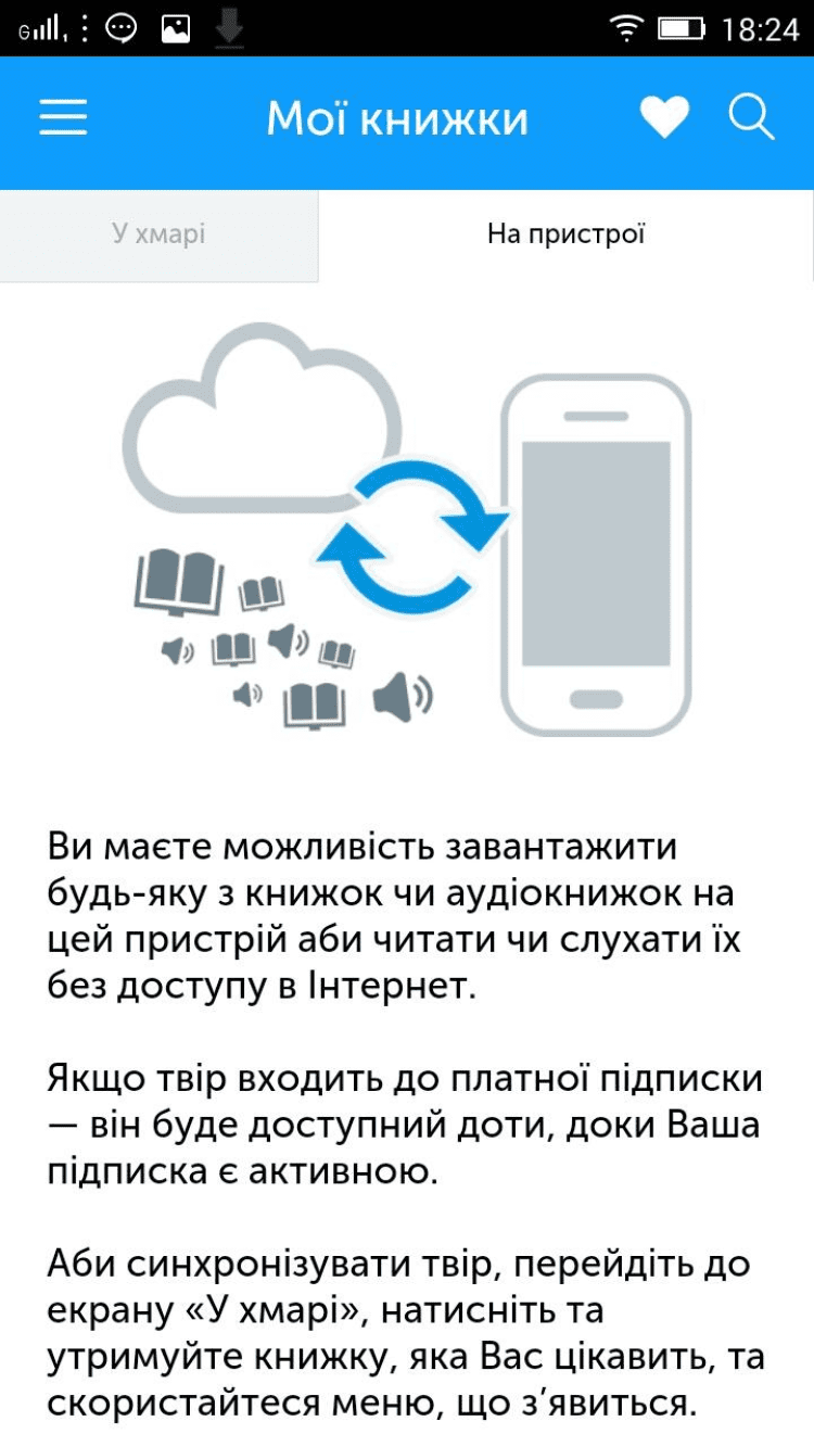 Обратите внимание, что приложение является бесплатным, плата за установку приложения на устройство не взимается. Если Вы активируете подписку на коммерческие книги — взимается абонентская плата 2 гривны 89 копеек в неделю.