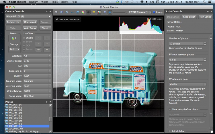 Более того, Smart Shooter поддерживает скрипты. Используя их можно, например, одним нажатием сделать серию снимков с разными параметрами.
