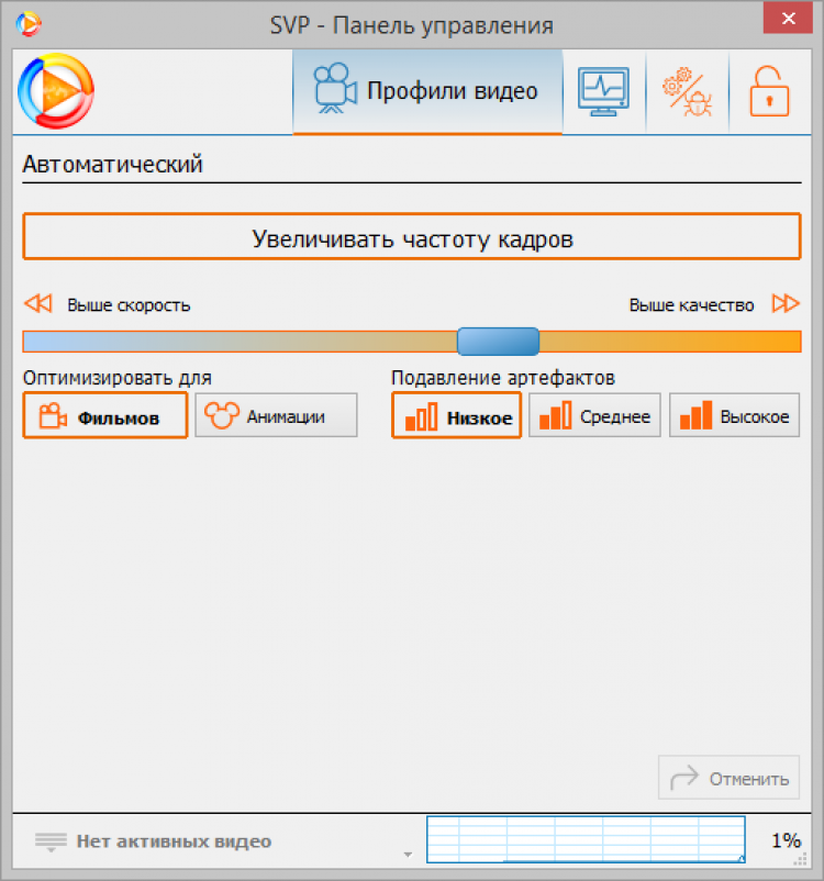 SmoothVideo Project обеспечивает более высокое качество картинки, по сравнению с аппаратными решениями, и предоставляет гибкие настройки, которые помогут добиться наилучшего эффекта. Программа поддерживает большинство современных видеокарт AMD и NVIDIA, выжимая максимум возможностей из них.