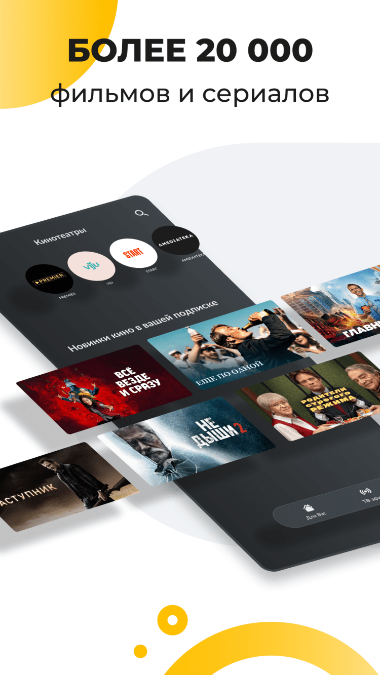 - доступ к контенту от онлайн-кинотеатров Ivi, Megogo, Amediateka и Start;