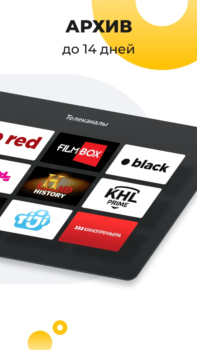 - архив эфира телеканалов, который хранится до 14 дней;