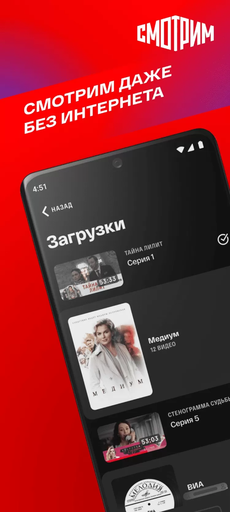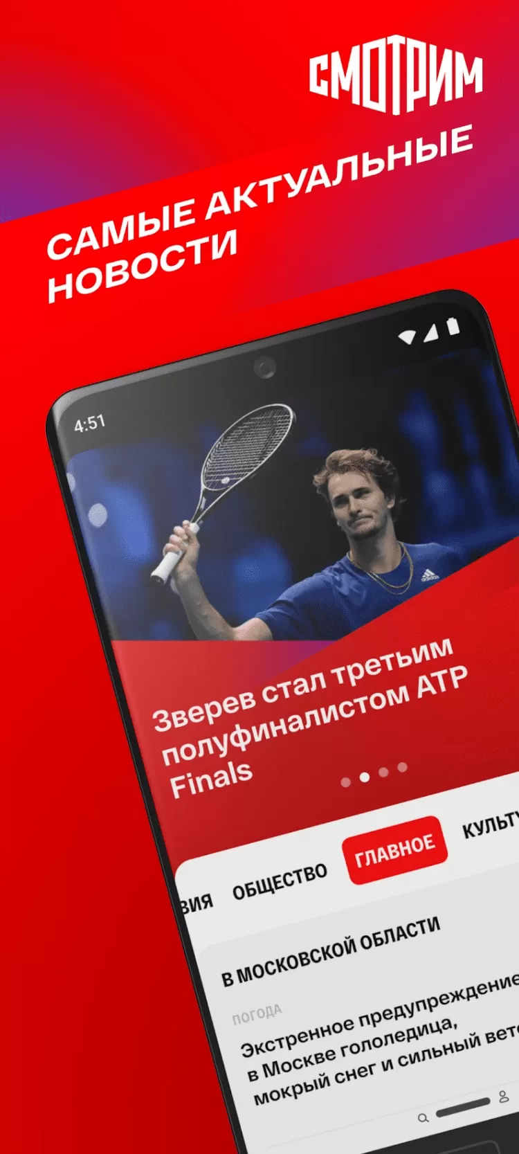 СМОТРИМ — это программа для доступа к эфиру главных телеканалов и радиостанций России, с мобильных устройств под управлением Android.