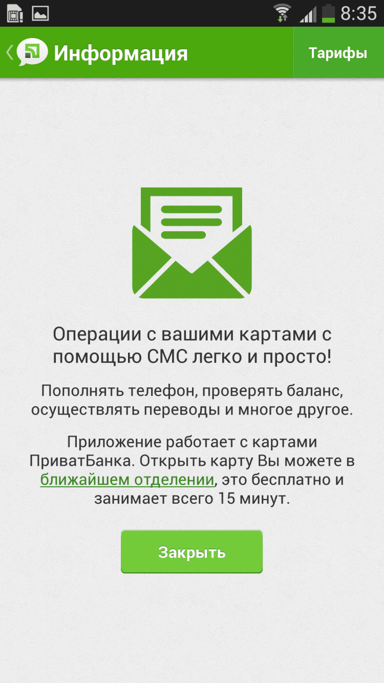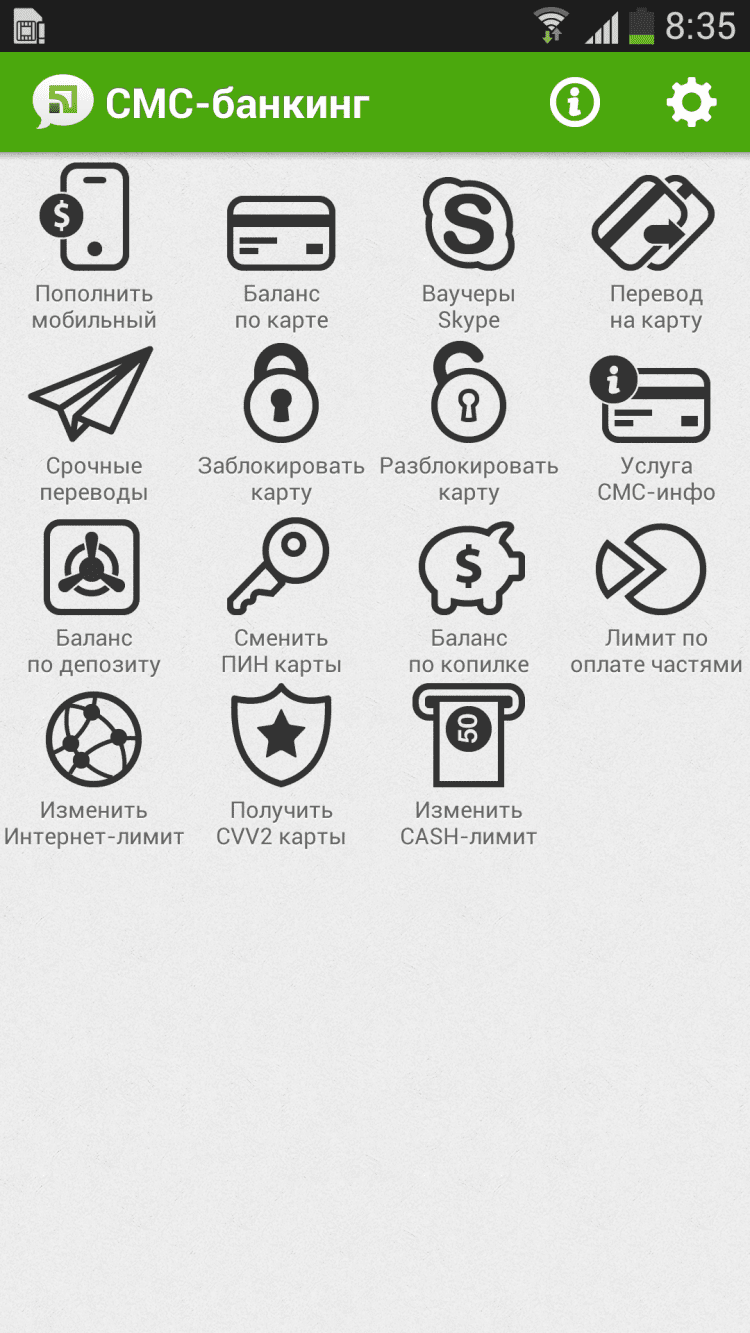 СМС-банкинг Программа для отправки команд СМС-банкинга всего за несколько кликов, для клиентов ПриватБанка. Создавайте шаблоны для банковских операций, отправлять деньги всего за несколько секунд и многое другое. Обратите внимание, что если вы используете мобильное устройство с двумя SIM-картами, SMS отправляются с первой активной SIM.