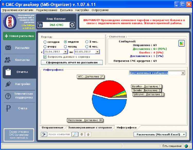 - получение актуальной отчетной информации о доставке сообщений;