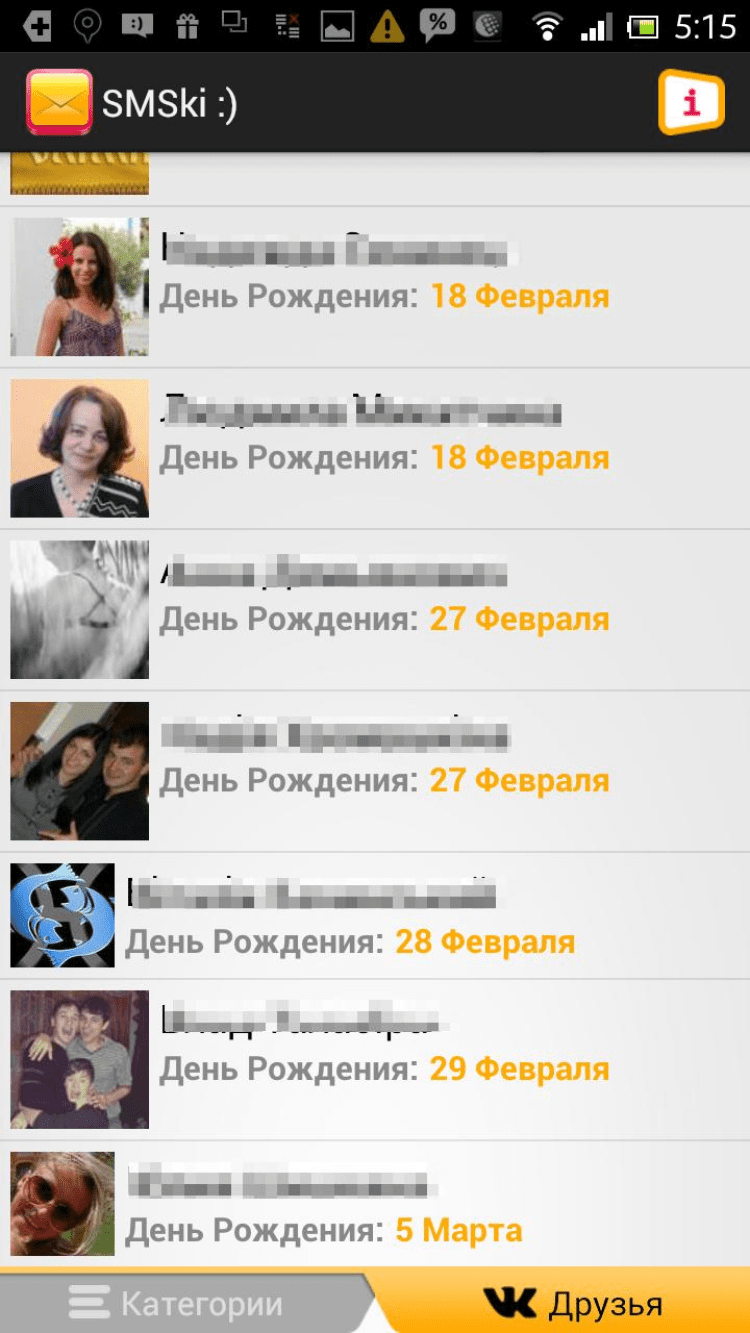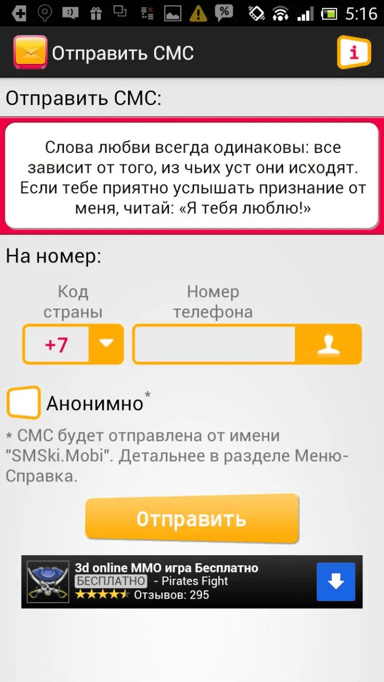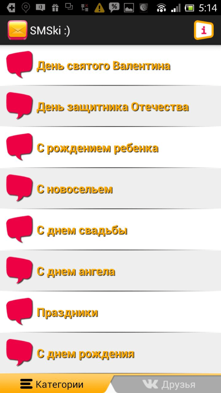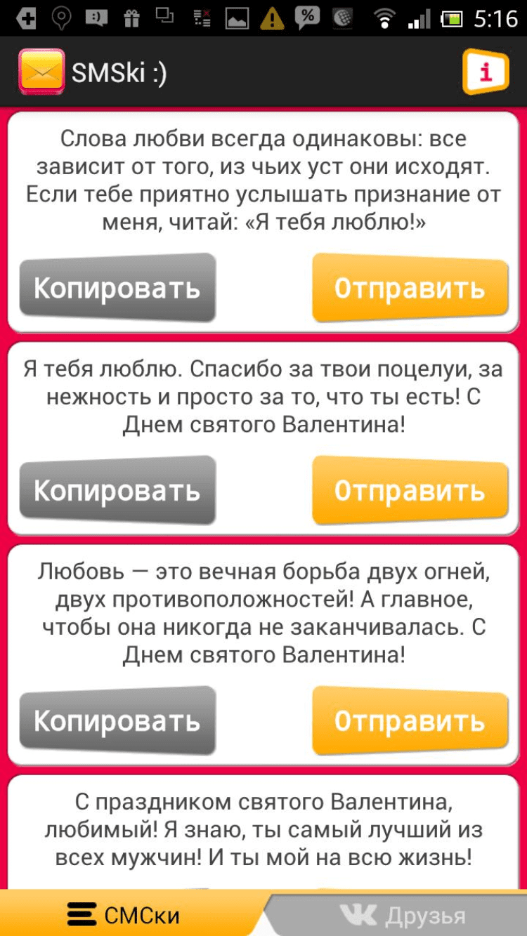 СМС поздравления от SMSki.Mobi Программа, содержащая оригинальные бесплатные смс сообщения на все случаи жизни. С помощью функционала программы можно поздравить любимую девушку в день святого Валентина, для этого достаточно трогательного поздравления по смс, которое превратит волнующий романтический вечер в сказку. Это и многое другое будет доступно после регистрации, без которой возможен лишь просмотр доступных категорий смс и копирование контента.