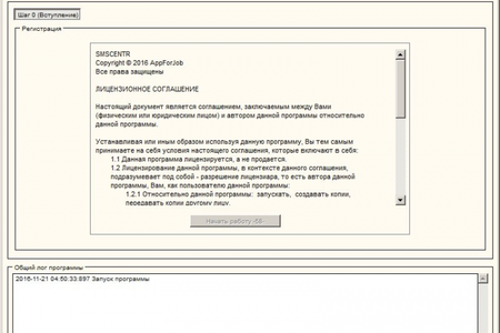 Регистрация осуществляется только по адресу Вашей почты. При наличии регистрации программа будет работать в не ограниченном режиме в течении всего времени регистрации, при ее отсутствии программа позволит отправить только 10 сообщений, после чего ее придется перезапускать. Программа имеет возможность загружать данные по рассылке из файлов.