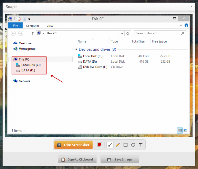 Snaplr - это компактная программа, с помощью которой можно быстро сделать скриншот. А с помощью инструментов рисования, которые есть в этой программе, вы сможете выделить часть скриншота, закрасить личную информацию, и добавить текст.