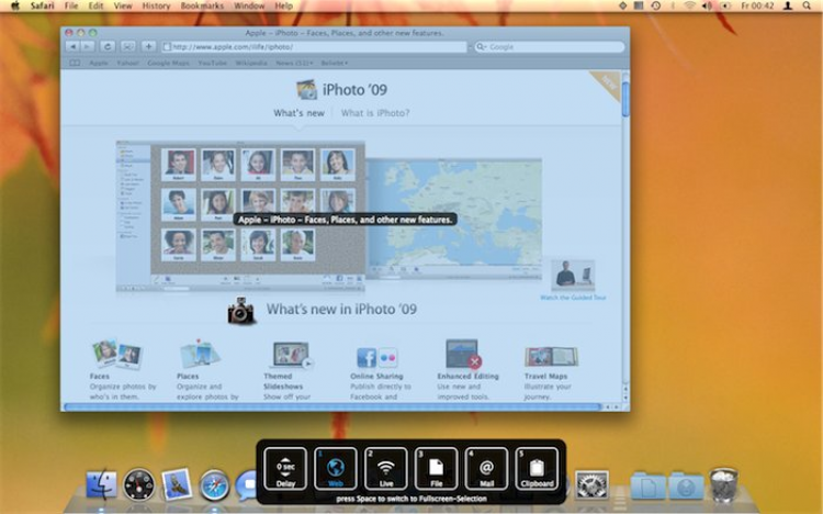 - полностью заменяет стандартный инструмент для создания скриншотов в Mac OS X