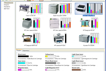 - отображение информации о запасе ресурсов принтеров в удобном графическом виде;