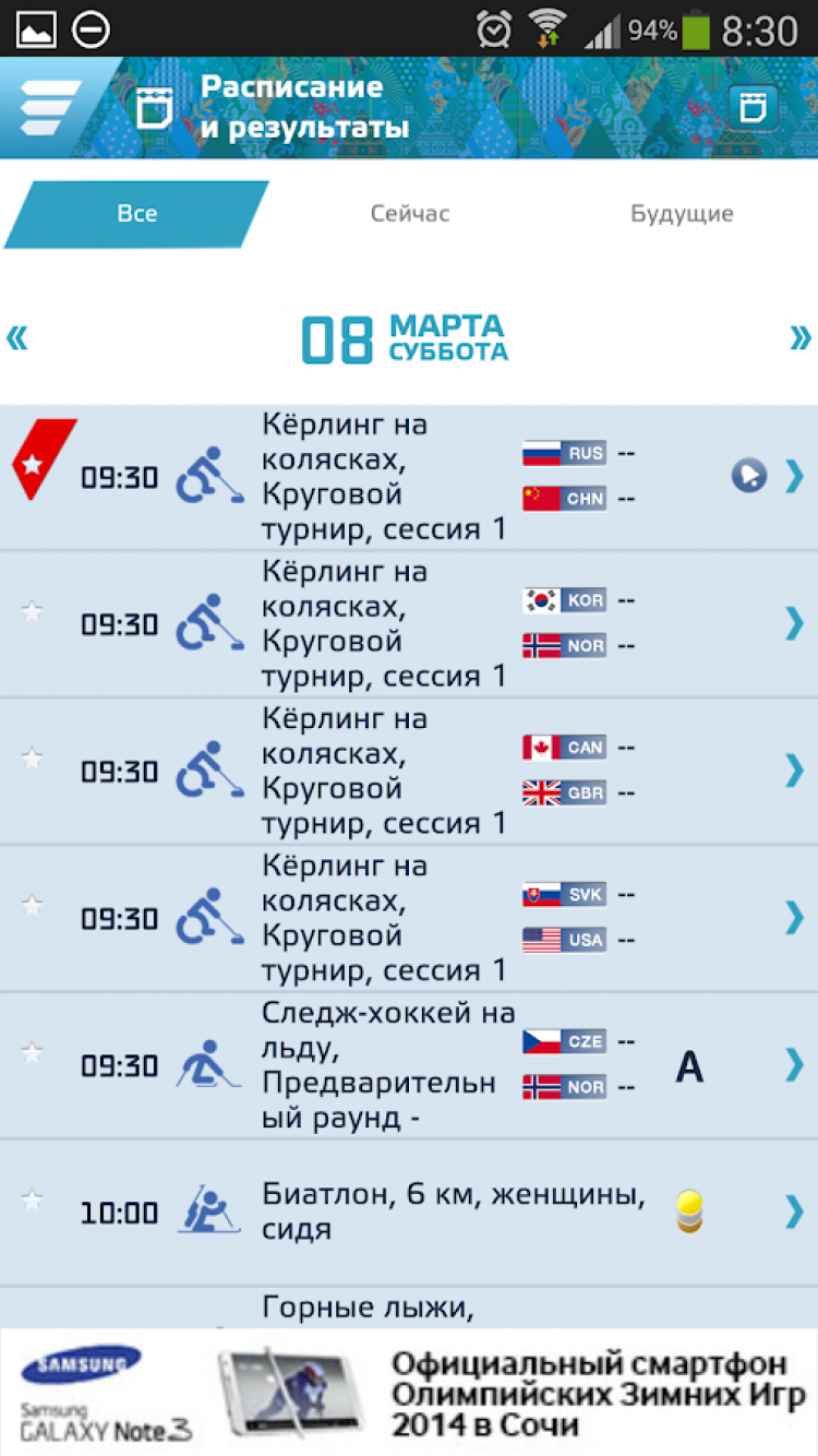 Sochi 2014 Results Программа, содержащая полную информацию по спортивной программе Олимпийских 2014 года, происходящих в г. Сочи. Эта программа поможет вам быть в курсе всей информации об олимпиаде, в том числе расписаний соревнований, их результаты, информацию о спортсменах и позволит вам составить ленту избранных спортсменов и отслеживать их успехи.