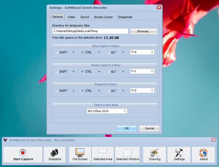 Еще Soft4Boost Screen Recorder может делать скриншоты одним нажатием. Сохраняются скриншоты в указанную пользователем папку с выбранном формате. Поддерживаются форматы PNG, JPG и BMP.