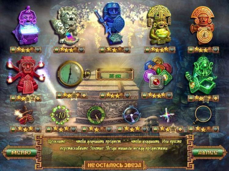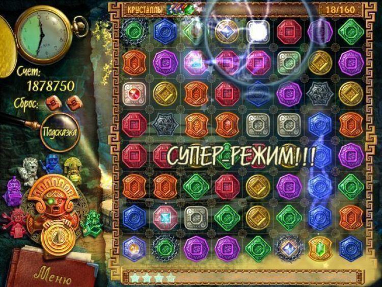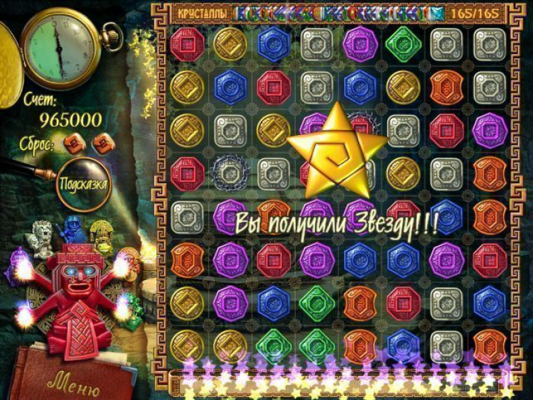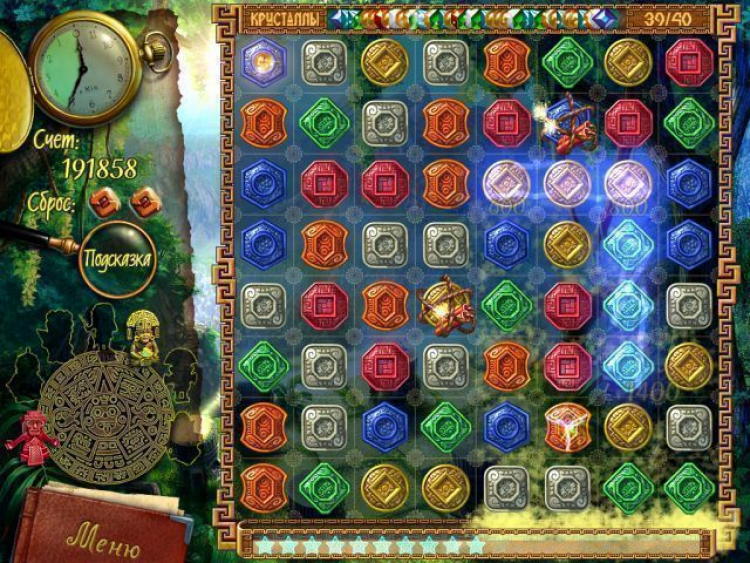 Эмили долго комбинировала их и так, и этак, пока в один прекрасный момент фишки не встали правильно и испарились, оставив кристаллы. И в тот же момент на месте исчезнувших фишек появились новые... В этой увлекательной игре вам необходимо помочь Эмили собрать все кристаллы и найти дорогу к древней столице ацтеков. Для этого придется изрядно постараться хитроумные индейцы ревностно хранят свои секреты от чужаков. Для выполнения этой миссии вам необходимо передвигать по игровому полю разноцветные фишки таким образом, чтобы после каждого хода получалась непрерывная цепочка из 3 (и более) одинаковых элементов.
