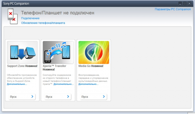 Работа с Sony PC Companion не требует наличия каких-либо особенных навыков и познаний в ПК или мобильных устройствах. Просто установите программу на компьютер и подключите телефон по дата-кабелю или Wi-Fi. А если вы являетесь обладателем смартфона или планшета от Sony на Android, воспользуйтесь подключением по Bluetooth. Гаджет автоматически определится и в окне программы появится список всех доступных возможностей. Также, максимально комфортному ознакомлению с функциями программы поспособствует наличие перевода на русский язык.