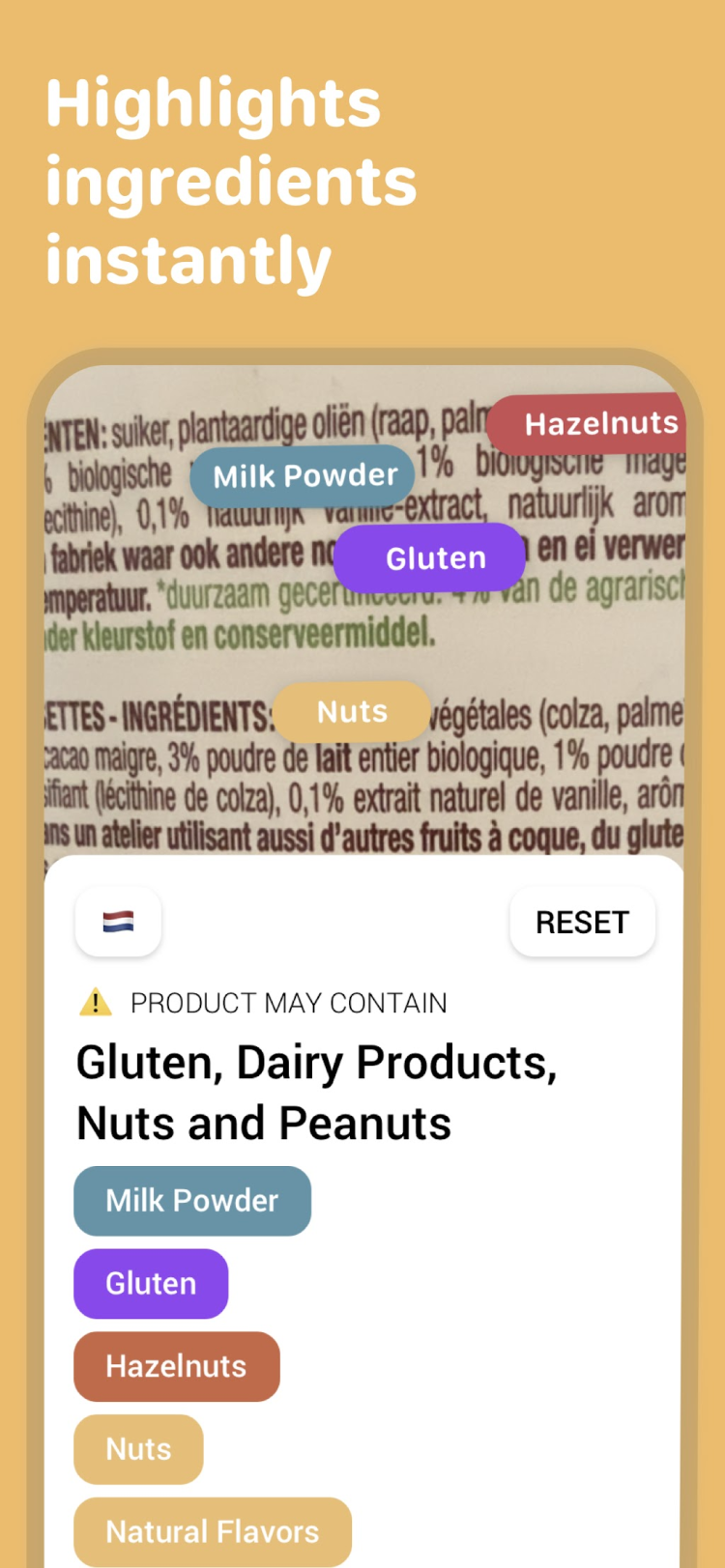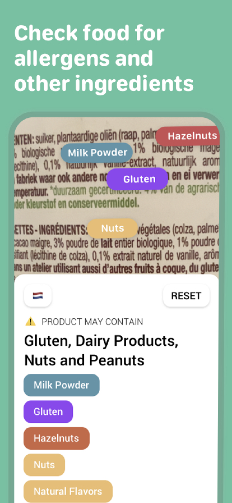 - настраиваемые оповещения об аллергенах и других ингредиентах