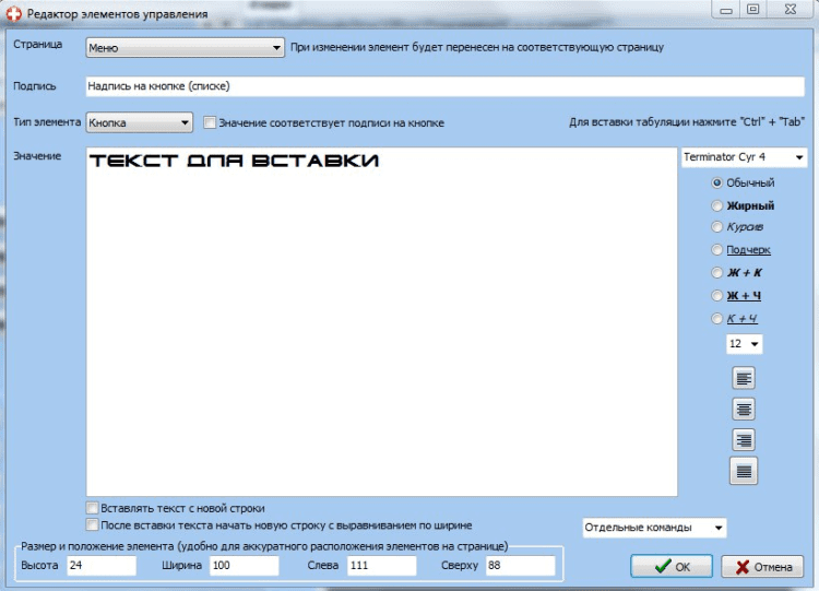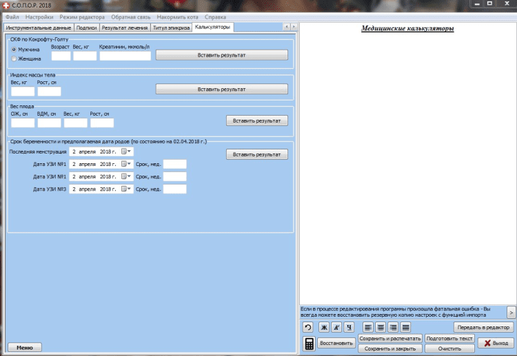 - Возможность редактирования набираемого текста в любом текстовом поле программы;