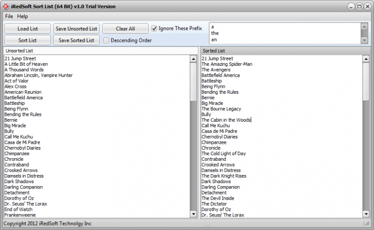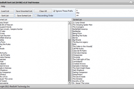 Sort List - это простое, но полезное приложение, позволяющее сортировать любые списки. Позволяет сортировать списки по возрастанию или убыванию в алфавитном порядке. Можно указывать префиксы, которые программа будет игнорировать.