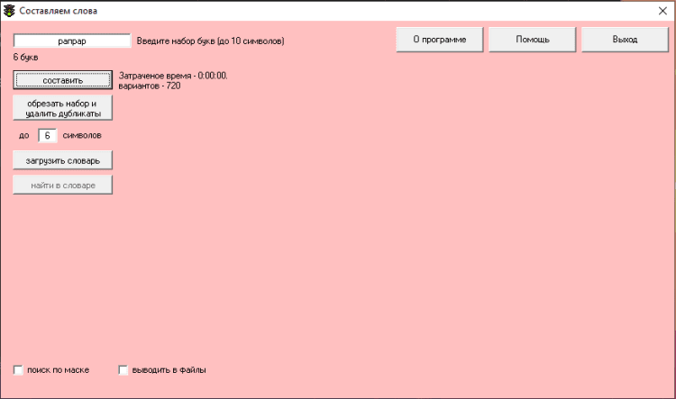 Sostav_Slova - это данная программа предназначена для автоматизации процесса подбора (составления) слов из имеющегося набора букв. Эта программка также поможет в решении ребусов и кроссвордов, основанных на перестановке букв, для поиска закодированного слова методом перебора комбинаций. С ее помощью можно составлять свои анаграммы или другие логические ребусы. Имеет простой русскоязычный интерфейс и встроенную помощь по работе с программой.