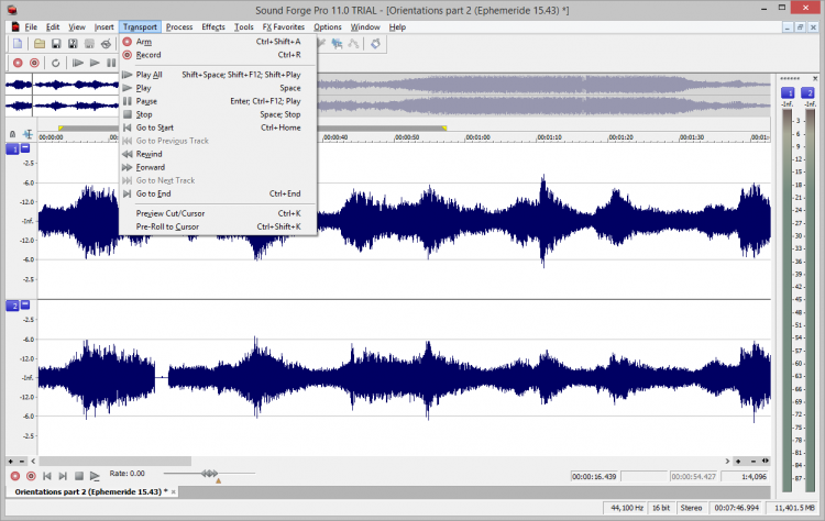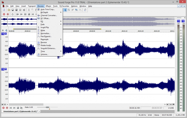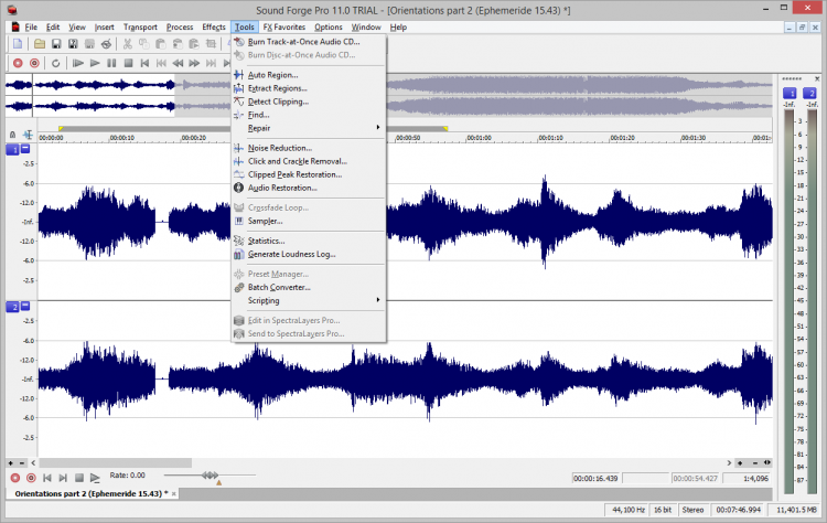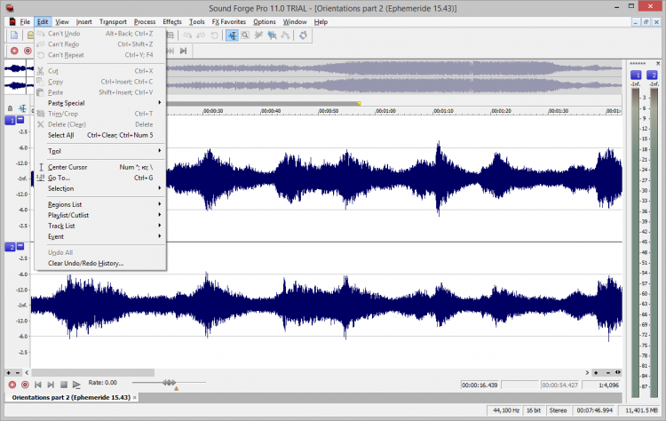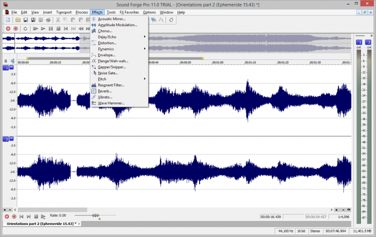 Процесс редактирования в Sound Forge Pro происходит в режиме реального времени. Это значит, что результат любых действий, применяемых к треку, сразу же заметен.
