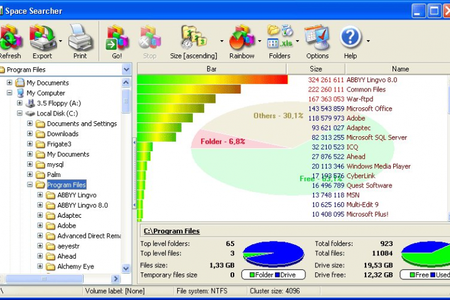 Space Searcher Позволяет контролировать пространство жесткого диска, визуально отображая, какие файлы и папки занимают слишком много места. Все отчеты могут быть сохранены в файлах Excel или HTML, или же распечатаны для дальнейшего анализа.