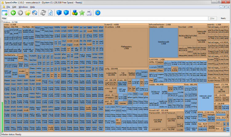 SpaceSniffer - это программа, которая в доступном и наглядном виде продемонстрирует степень загруженности жесткого диска компьютера и предоставит полный обзор его содержимого.