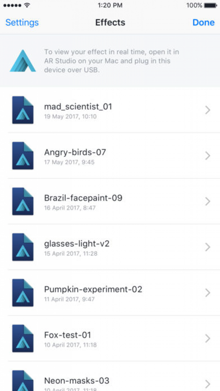Spark AR Player работает в паре с приложением AR Studio для Mac. Эта программа поможет вам протестировать созданные эффекты, маски, рамки для камеры Facebook, прямо со своего iPhone, iPad или iPod Touch.