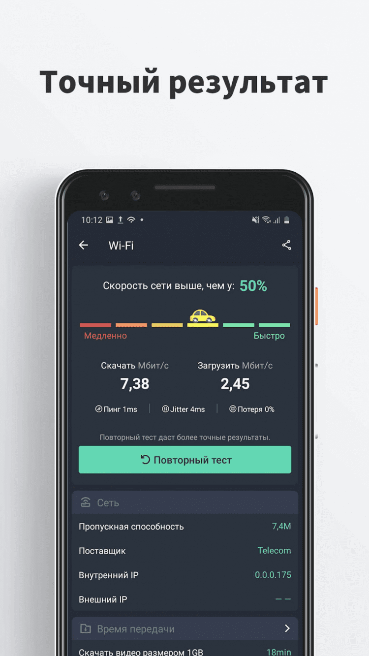 - функция автоматической проверки скорости при плохом качестве подключения к сети;