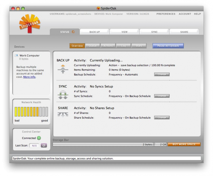- Настраиваемая мультиплатформенная синхронизация. DropBox для синхронизации создаёт специальную папку, в которую надо помещать все синхронизируемые файлы. SpiderOak может работать с любым каталогом.