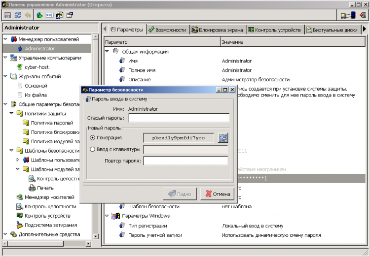 - Динамическая смена пароля пользователя в операционной системе для управления доступом к сетевым ресурсам.