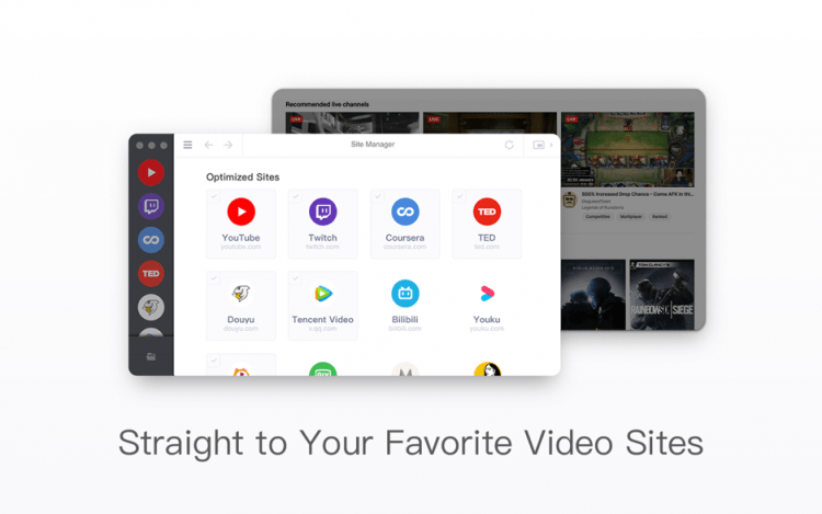 SPlayer так же предлагает встроенный видео браузер. С его помощью можно выбирать и смотреть онлайн видео и трансляции с различных площадок.