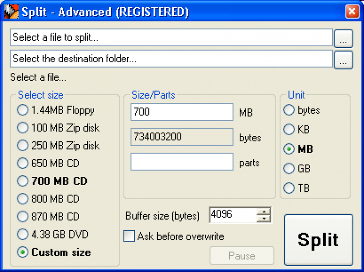 SplitFile Программа, которая поможет разделить один большой файл на несколько файлов меньшего объема.