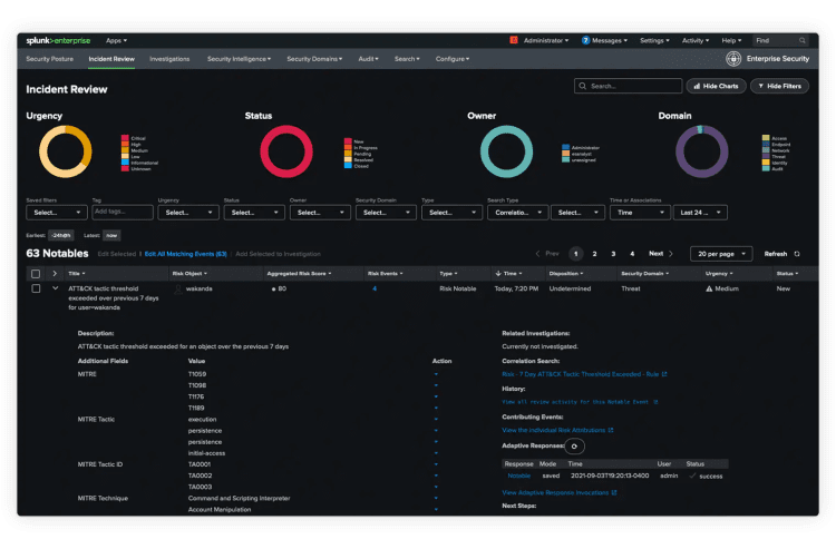 Полная индексация делает возможными полную визуализацию, экспертизу, а также поиск и устранение неполадок. Обмениваясь полезными результатами поиска и наращивая уникальные знания о вашей ИТ-среде, вы и ваша рабочая группа сможете оптимизировать рабочий процесс. Создавайте специализированные отчеты для выявления трендов или контроля за соблюдением требований. Разрабатывайте действующие в режиме реального времени информационные панели для мониторинга нарушений системы безопасности и атак, соглашений об уровне обслуживания приложений и других ключевых показателей производительности. В режиме реального времени анализируйте пользовательские транзакции, поведение клиентов и машин, угрозы безопасности, мошенническую деятельность и многое другое.