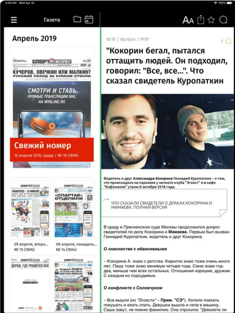 Информация в приложении обновляется в режиме реального времени, что позволит вам читать спортивные новости сразу же после того, как они появятся на сайте sport-express.ru. Так же, вы сможете просматривать онлайн-трансляции спортивных матчей со своего мобильного устройства в любом месте, где бы вы ни находились. Текстовые статьи программа позволит скачивать в память устройство для дальнейшего прочтения в режиме оффлайн, либо отправлять друзьям по электронной почте или через социальные сети.