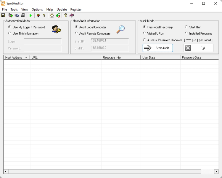 SpotAuditor Мощное программное обеспечение для восстановления забытых паролей от программ. Поддерживает более 40 различных программ. SpotAuditor умеет восстанавливать пароли в Internet Explorer 7-8-9, Internet Explorer 6.x, Outlook Express и Microsoft Office Outlook, Opera, Mozilla Firefox, MSN messenger, Windows Live Messenger 8, Windows Messenger, ICQ, &RQ, R&Q, Trillian, Miranda IM, Google Talk, Camfrog Video Chat, Easy Web Cam, WinProxy, VNC и др.