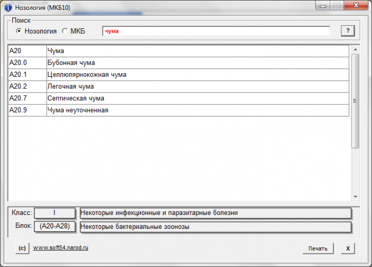 Справочник МКБ-10 - это электронная версия справочника по международной классификации болезней. Позволяет искать болезни по нозологии (названию) или коду МКБ-10. Предоставляет информацию о классе болезни, ее коде и блоке. Ест возможность экспорта результатов поиска в PDF файл.