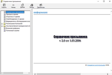 Справочник призывника - это вторая версия популярного Справочника призывника, содержащего обширную информацию обо всех способах легально избежать службы в армии. На страницах справочника Вы найдете полное Расписание болезней и текста закона об АГС, узнаете, кому можно получить отсрочку или освобождение от армии и какие документы для этого необходимо предоставить, как будет развиваться военная реформа и что будет после 1 января 2008 года, как проходит призыв в армию и многое другое.