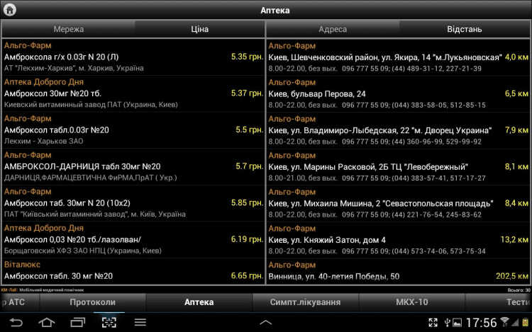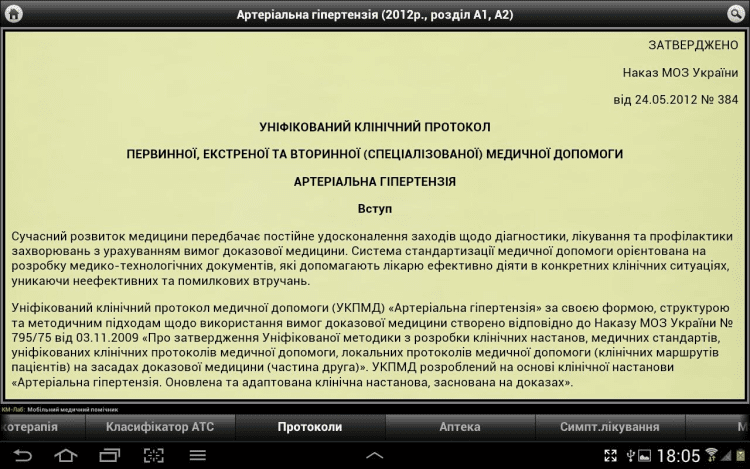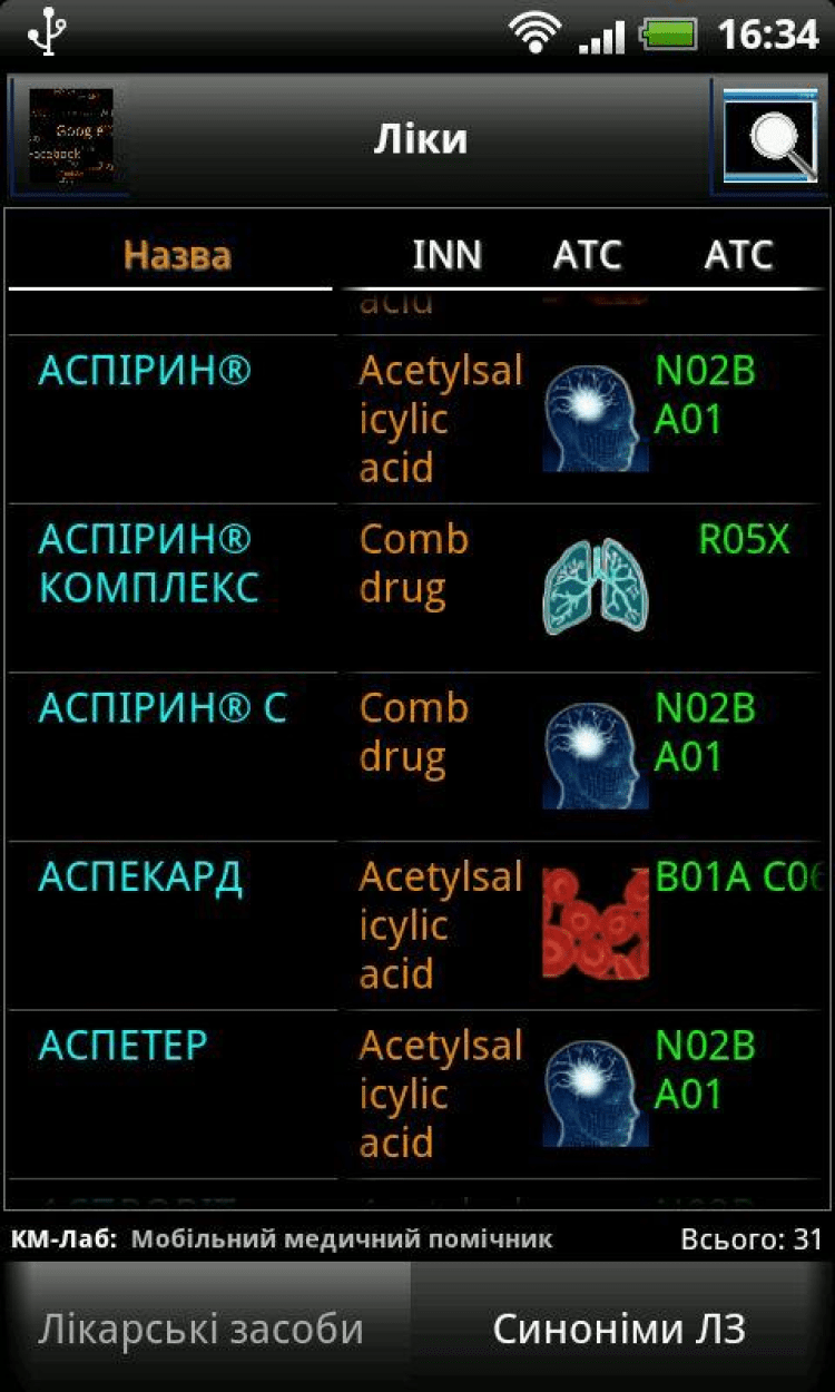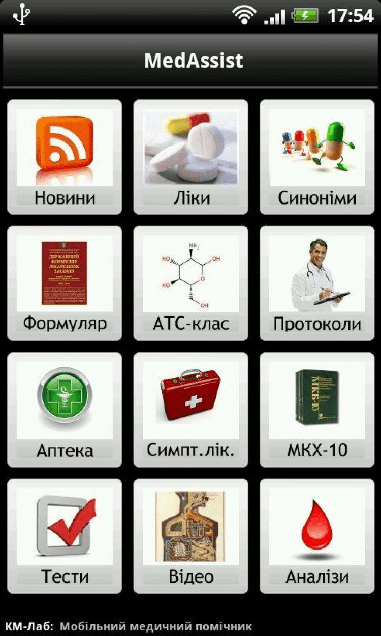 MedAssist Профессиональная медицинская информационно-справочная система, которая включает в себя протоколы диагностики и лечения заболеваний, справочник зарегистрированных лекарственных средств, формуляр лекарственных средств (с доказанной эффективностью и допустимым уровнем безопасности), международный АТС-классификатор, международный классификатор болезней (МКБ-10), нормы основных лабораторных анализов и функциональных показателей, медицинские новости и статьи от ведущих экспертов, а также возможность поиска ближайшей аптеки с подходящим по цене ЛС, ее адрес, режим работы, телефон и местоположение на карте. В программе использованы официальные документы (данные) МЗ Украины. MedAssist реализована на украинском языке.