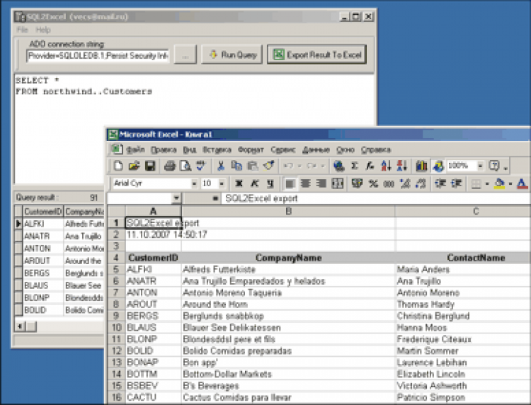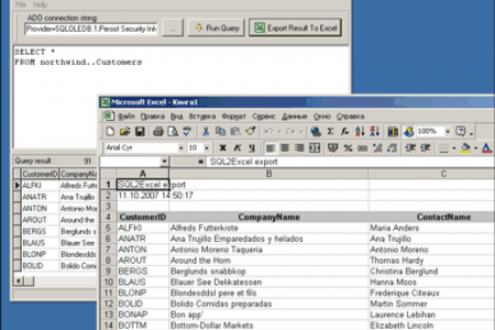 Небольшая, но полезная программа для передачи результатов SQL-запросов в Excel. Это довольно часто бывает необходимо в отделах АСУ предприятий. Одной из главных особенностей программы является высокая скорость работы